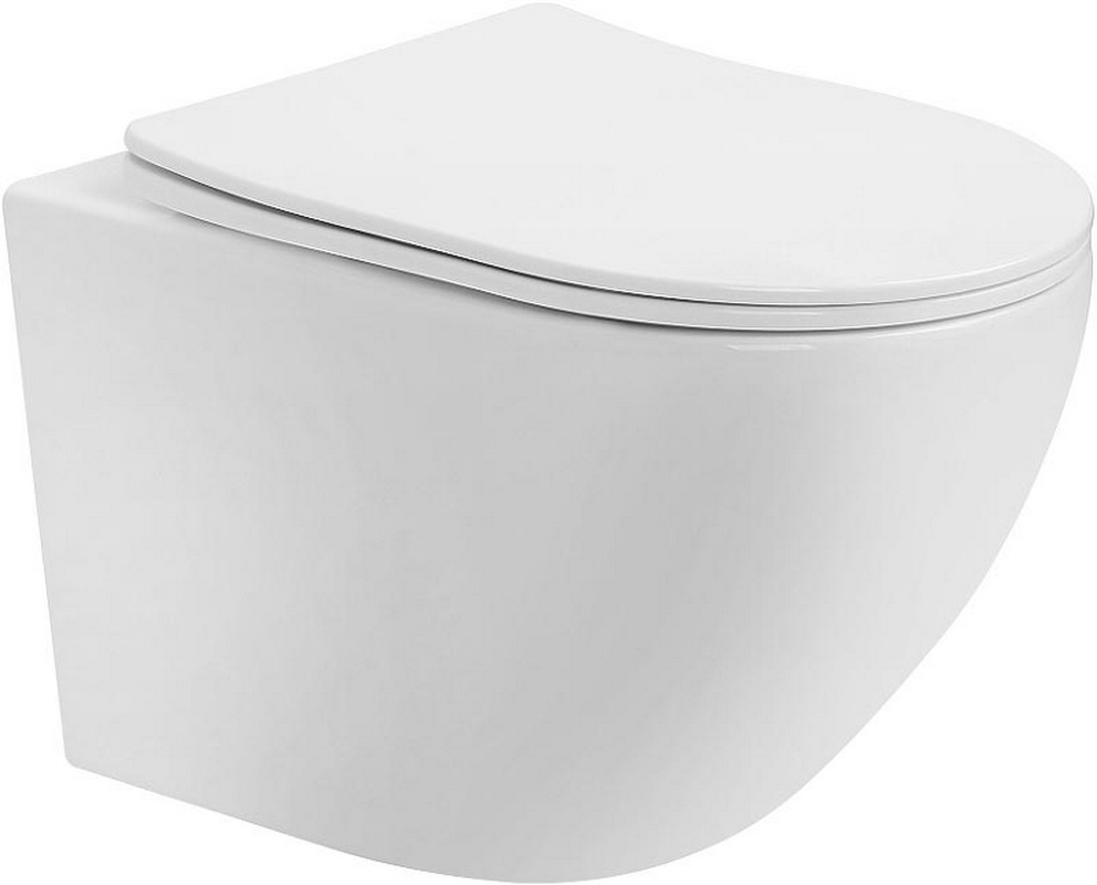 Унитаз подвесной 480х360мм, безободковый, смыв Tornado, сиденье с микролифтом, крепёж в компл., (цв.белый глянец), Ovo