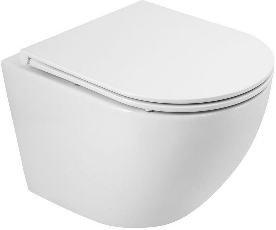 Унитаз подвесной 525х360мм, безободковый, сиденье с микролифтом, крепёж в компл., (цв.белый глянец), Ovo