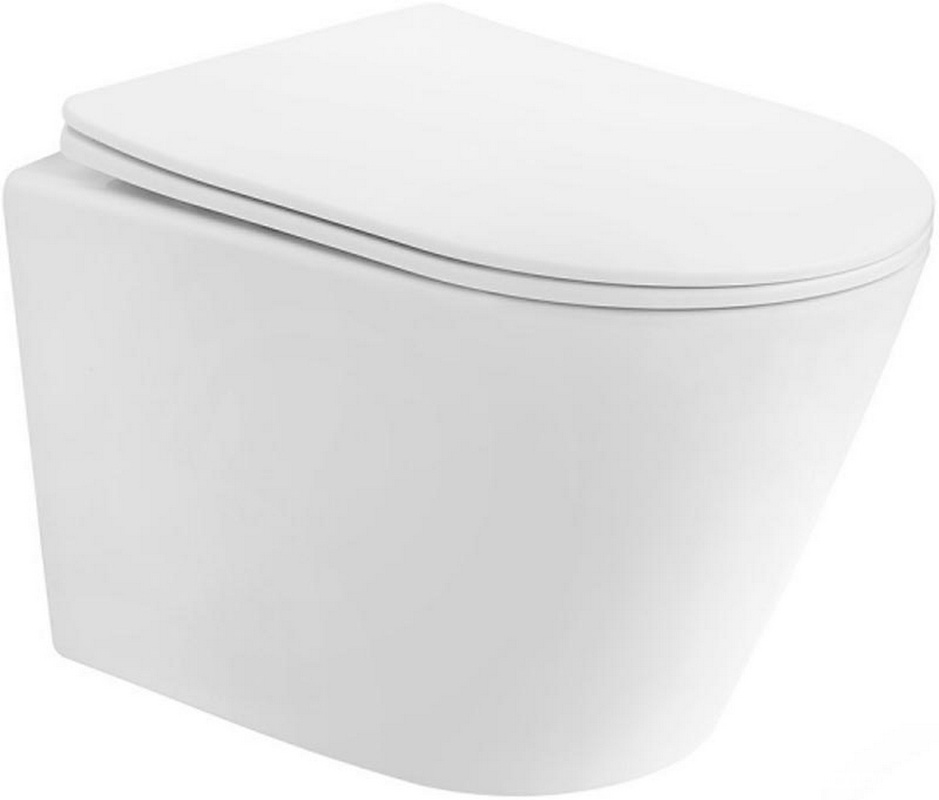 Унитаз подвесной 525х360мм, безободковый, сиденье с микролифтом, крепёж в компл., (цв.белый матовый), Ovo