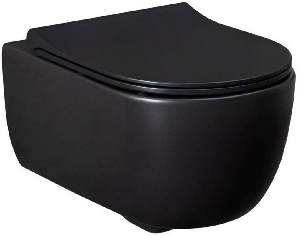 Унитаз подвесной, безободковый, 55х36см, сиденье с микролифтом, крепеж в компл., (цв.черный матовый), Bequem ZZ