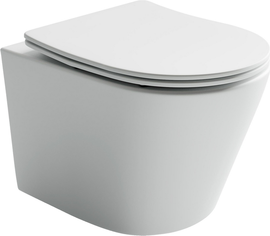 Унитаз подвесной 525х360мм, безободковый, сиденье с микролифтом, крепёж в компл., (цв.белый матовый), Ovo
