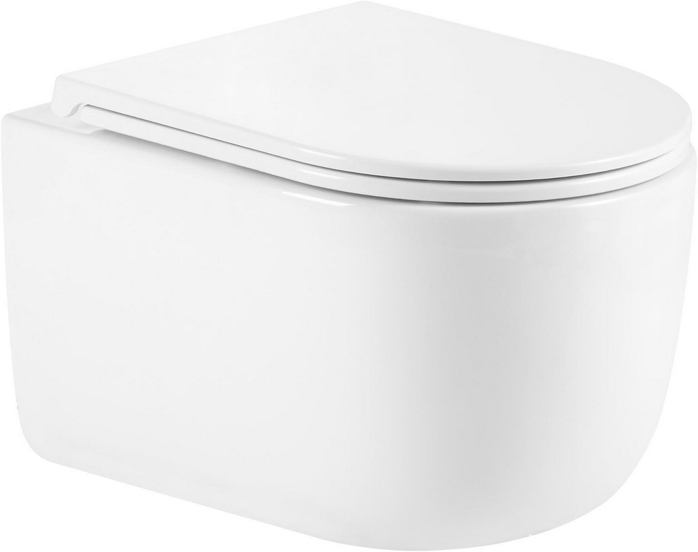 Унитаз подвесной 525х360мм, безободковый, сиденье с микролифтом, крепёж в компл., (цв.белый глянец), Ovo