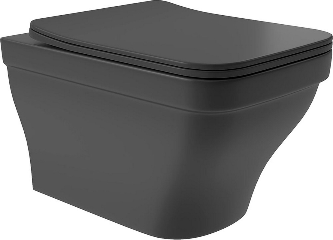 Унитаз подвесной, безободковый, 520х360х350мм, сиденье ультратонкое с микролифтом, крепеж в компл., (цв.антрацит матовый), ZZ Vincea Q-Line VT1-12MA