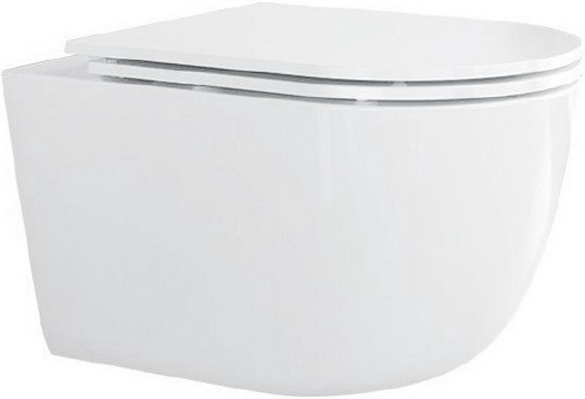 Унитаз подвесной 525х360мм, безободковый, сиденье с микролифтом, крепёж в компл., (цв.белый глянец), Ovo