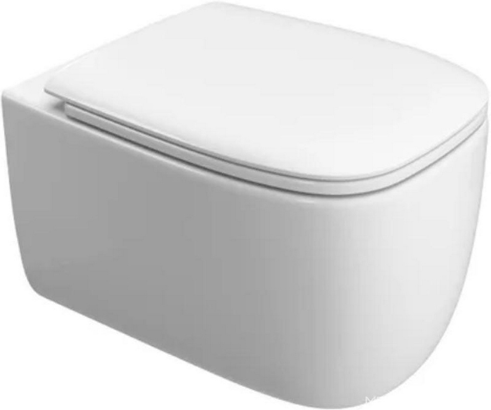 Унитаз подвесной 525х360мм, безободковый, сиденье с микролифтом, крепёж в компл., (цв.белый матовый), Ovo