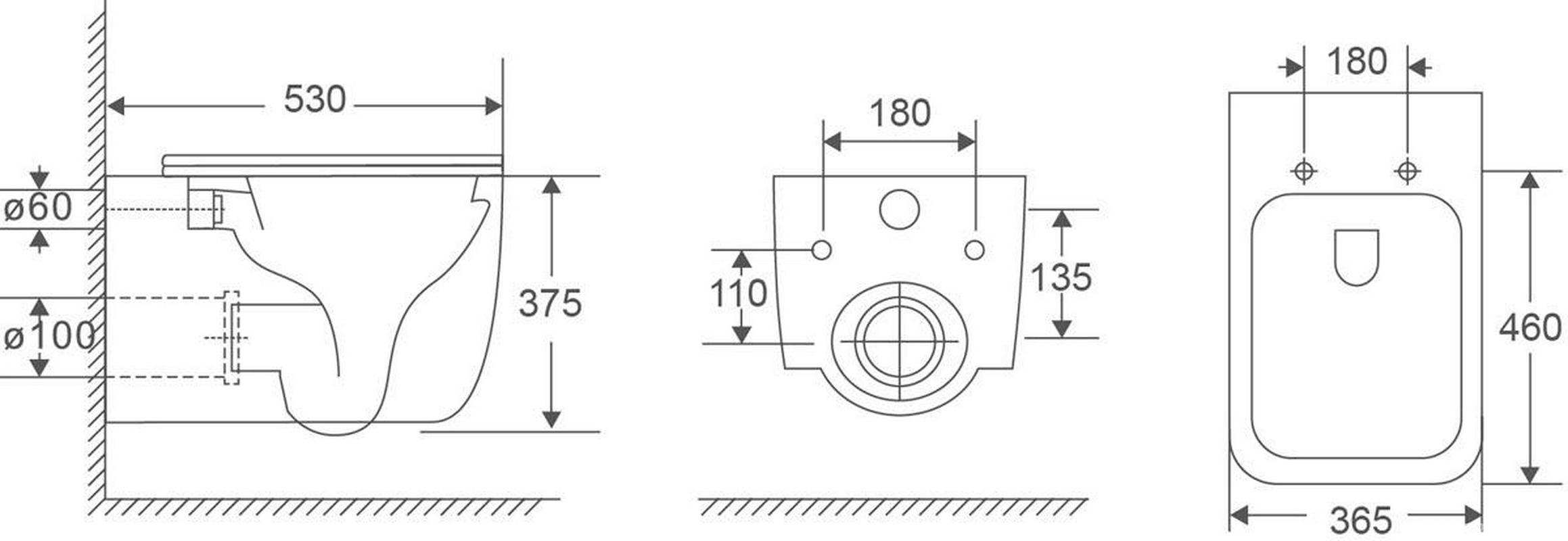 Унитаз подвесной 37,5х51cм, безободковый, БЕЗ сиденья, Arcade