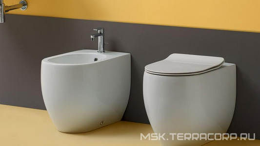 Унитаз приставной Kerasan Flo Унитаз напольный 36х48хh42см, пристенный, для монтажа со скрытым в стене бачком, крепл к полу в комп, без сиденья, (цв.белый глянец), Flo ZZ