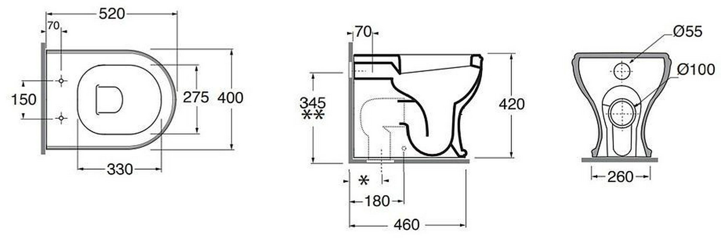 Унитаз напольный, приставной, 52х40см, монтаж со скрытым в стене бачком, без сиденья, крепёж к полу в компл., ZZ Azzurra Charme CHVCTT000000BI
