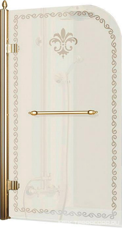 Комплектующие для ванны Cezares RetroШтора на ванну 815хh1450мм, "Левая" петли слева, поворотная, с полотенцедержателем, (стекло матовое с прозр./узором, 8мм, фурн/цв.золото), Retro ZZ