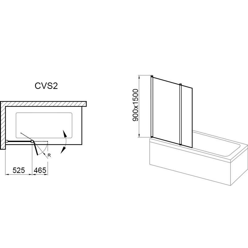 Комплектующие для ванны Ravak CVS2Шторка для ванны CVS2 - 100 L (левая), двухэлементная, профиль хром блестящий, стекло прозрачное ZZ