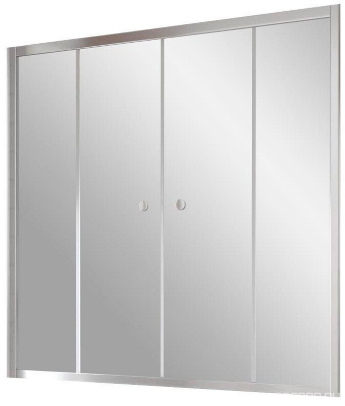 Штора на ванну, 4-х секционная, складная, 1000хh1400мм, "Правая"/"Левая", (профиль цв.хром, стекло 5мм прозрачное), Pratico