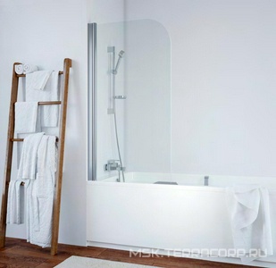 Штора на ванну, 4-х секционная, складная, 1000хh1400мм, "Правая"/"Левая", (профиль цв.хром, стекло 5мм прозрачное), Pratico