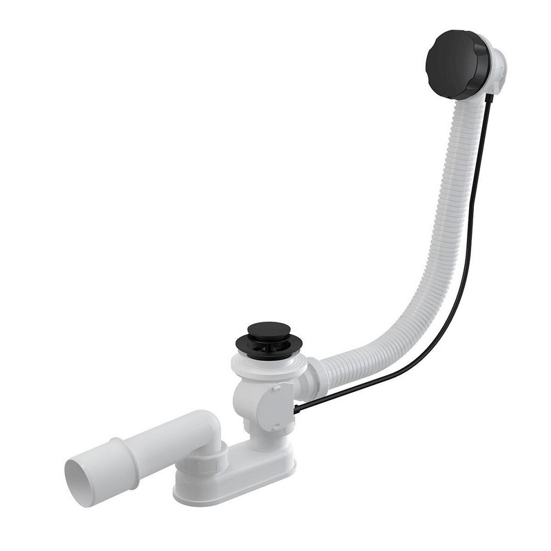 Комплектующие для ванны AlcaPlast УниверсалСлив-перелив (Сифон) 80 см, для ванны полуавтомат, комплект металл черный, ZZ
