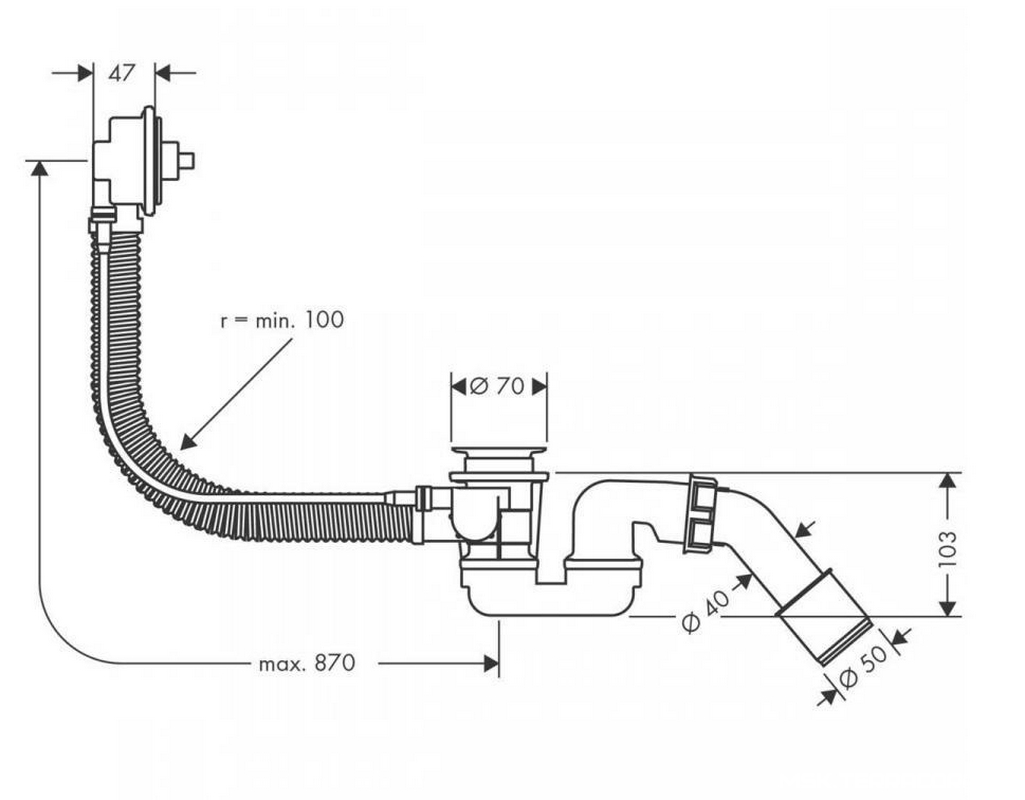 Комплектующие для ванны Hansgrohe УниверсалСлив-перелив удлиненный для нестандартных ванн, без поворотной ручки и пробки слива, Flexaplus ZZ