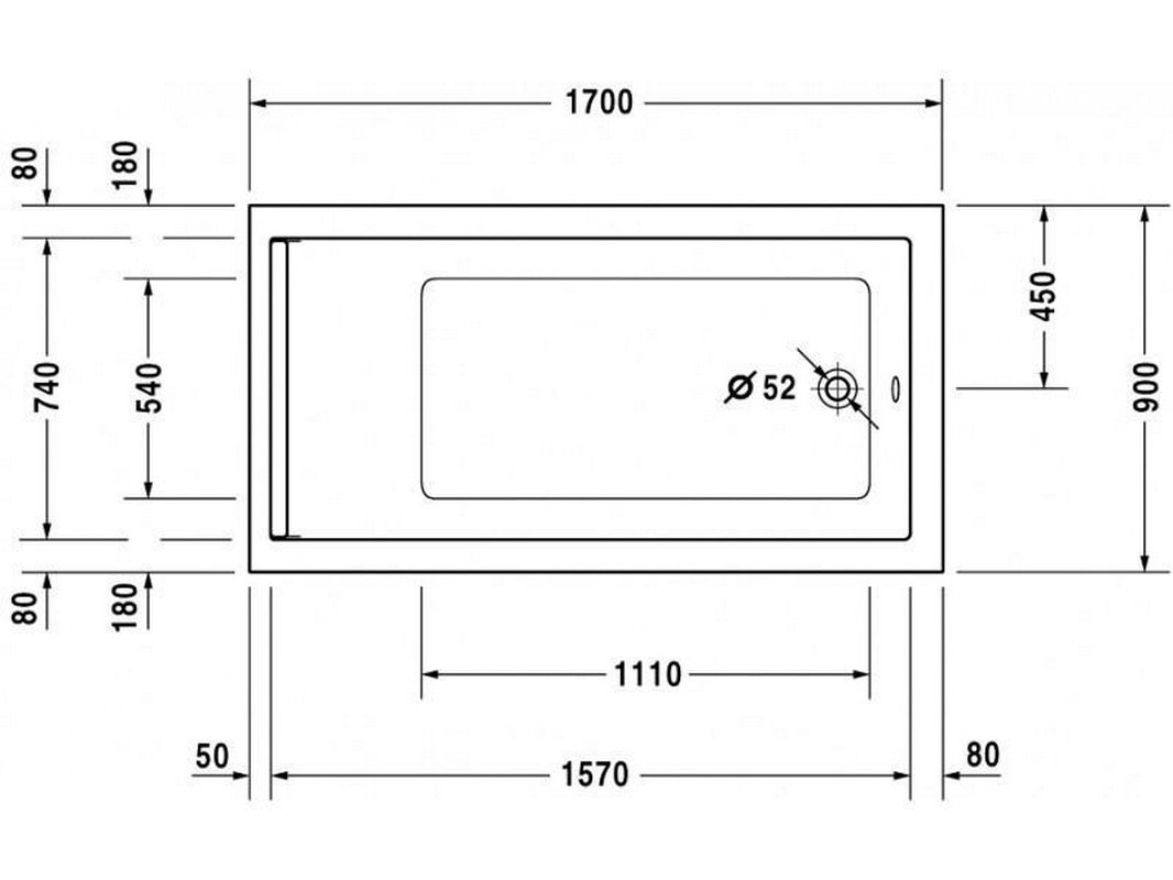 Ванна акриловая 1700х900хh485мм, без ножек и слива/перелива, ZZ Duravit Starck 700118000000000