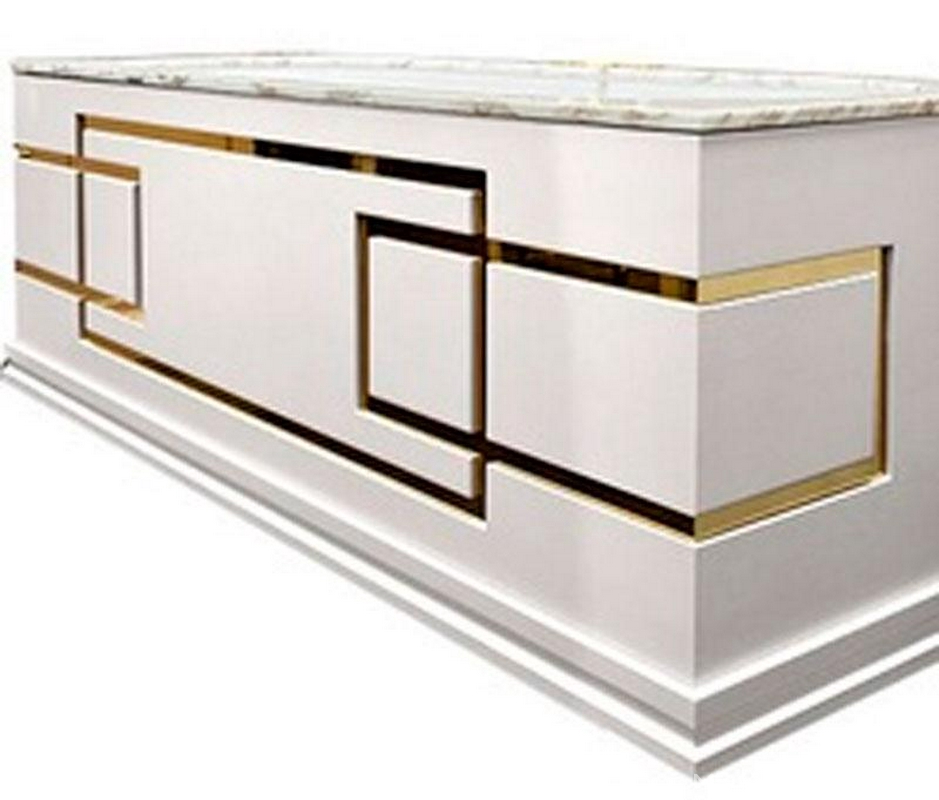 Ванна пристенная Oasis Aurelie Ванна 183(188,5)х83хh66см, сталь, фронт и бок панели цв.Bianco Lusido отд.цв.золото, SX левая, сверху мрамор цв.Calacatto Oro, сифон/комп., Aurelie ZZ