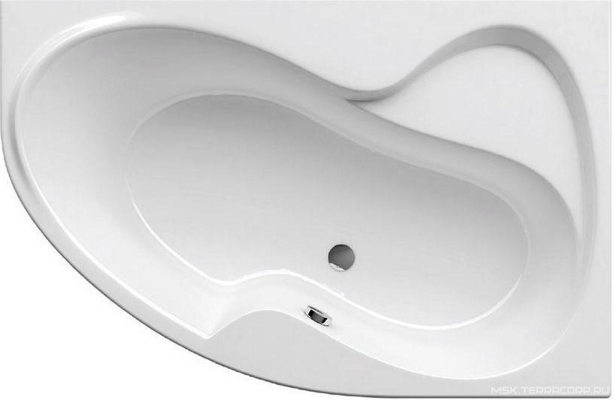 Ванна акриловая 160x105 правая, 3 отв. под смесителя, БЕЗ панели, слива-перелива, белая ZZ Ravak ROSA II CL2100_Отв.под смес.