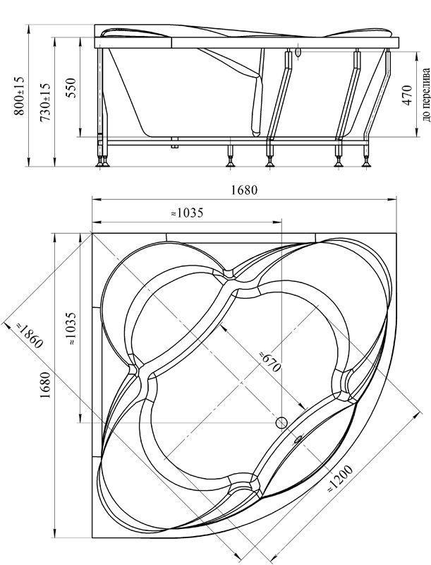 Ванна акриловая "ФИЛАДЕЛЬФИЯ", 1680х1680, ГМ4, СМ8, контроллер 200, АМ, хромотерапия 2 лампы, каркас и слив-перелив хром в компл., фронт. панель XX Radomir Филадельфия ФИЛАДЕЛЬФИЯ хром.