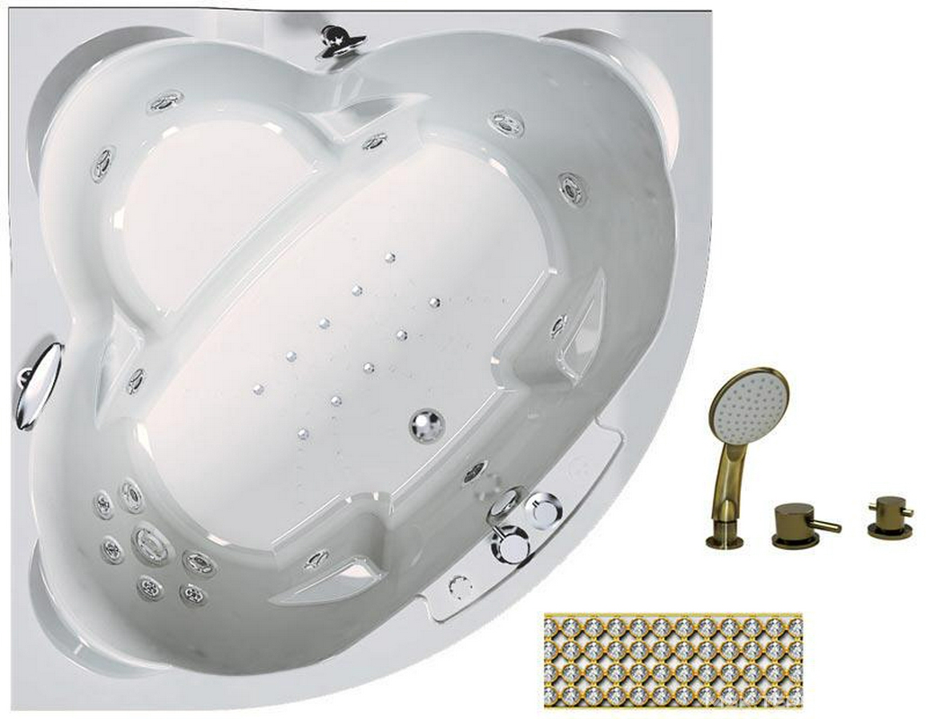 Ванна "СОРРЕНТО-GOLD",1480х1480, фронт.пан/"Swarovski"+ вствк."Арт-Мозаика", молдинг, ГМ6, НМ2, СМ7,смес/изл."Бриз-Ниагара-GOLD"+ контр.200, слив/зол. Radomir Сорренто 021986