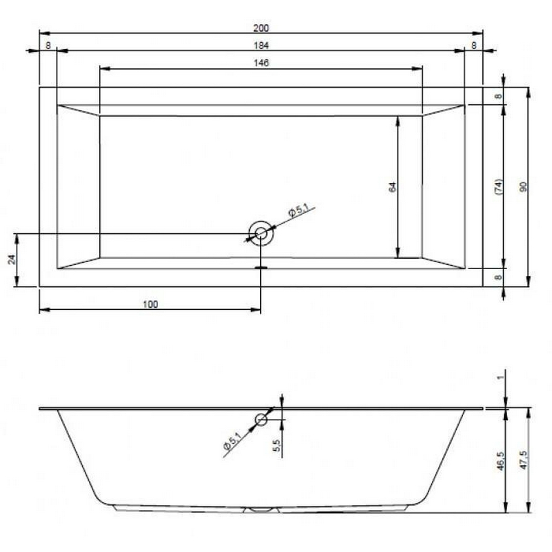 Ванна пристенная Riho lugo Ванна 200х90см, без ножек/рамы, панелей, слива-перелива, (акрил цв.белый), Lugo ZZ