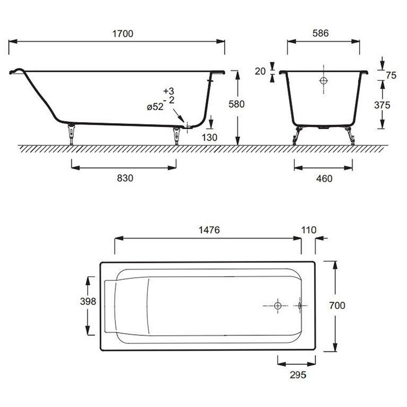 Ванна пристенная Jacob Delafon Parallel Ванна чугунную Parallel БЕЗ АНТИСКОЛЬЗЯЩЕГО ПОКРЫТИЯ /170x70/, безотверстий для ручек ZZ
