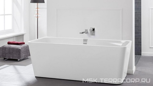 Ванна свободностоящая Villeroy & Boch Squaro Edge 12 Ванна 1800х800хh450мм, отдельностоящая, (кварил цв.белый), панель цв.белый),(слив-перелив, крышки цв.белый и хром в компл.,), Squaro Edge 12 ZZ